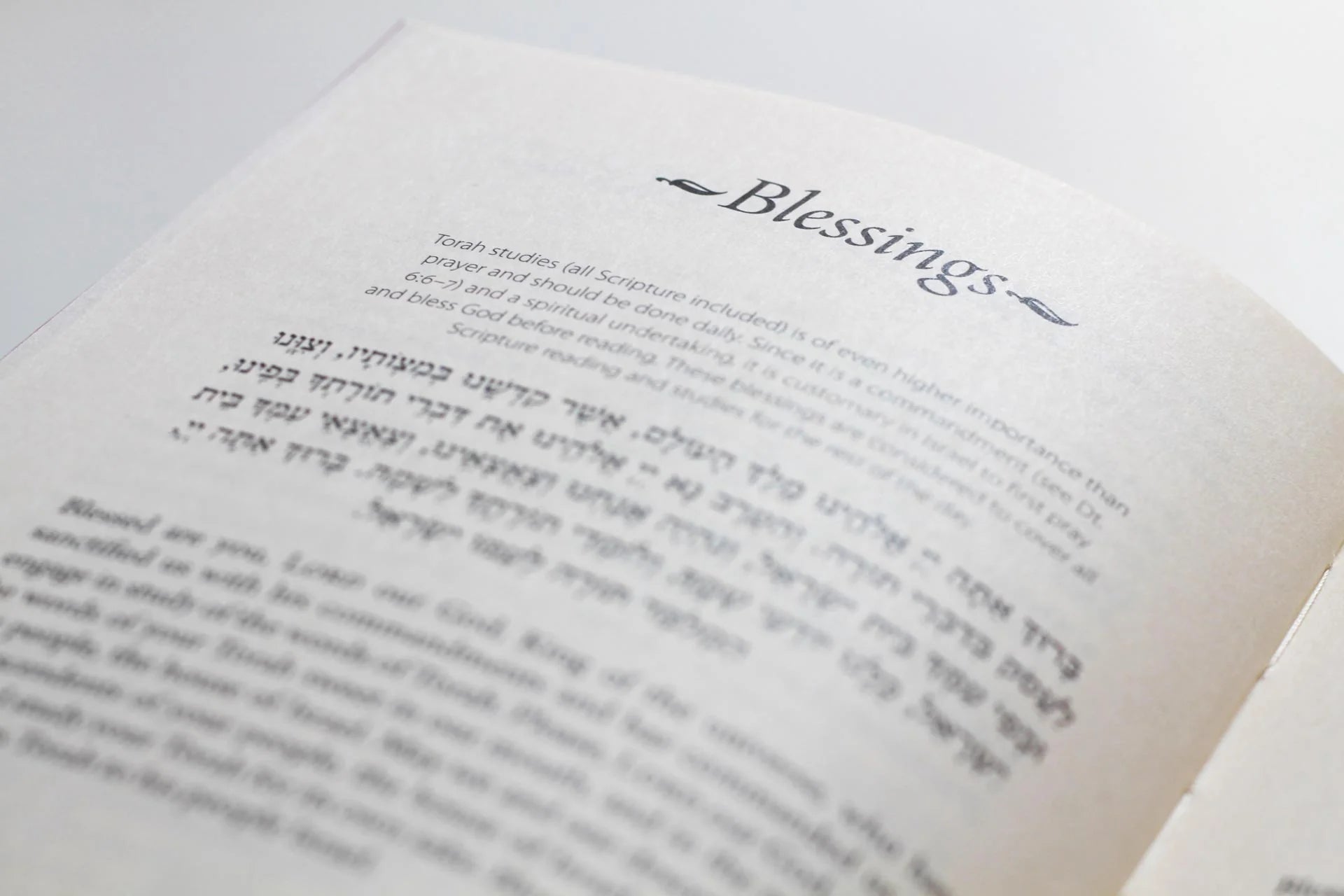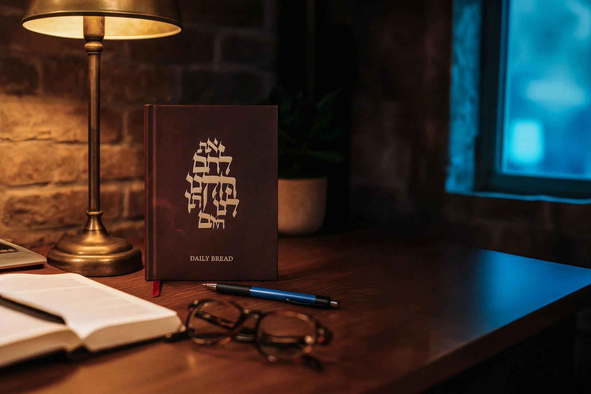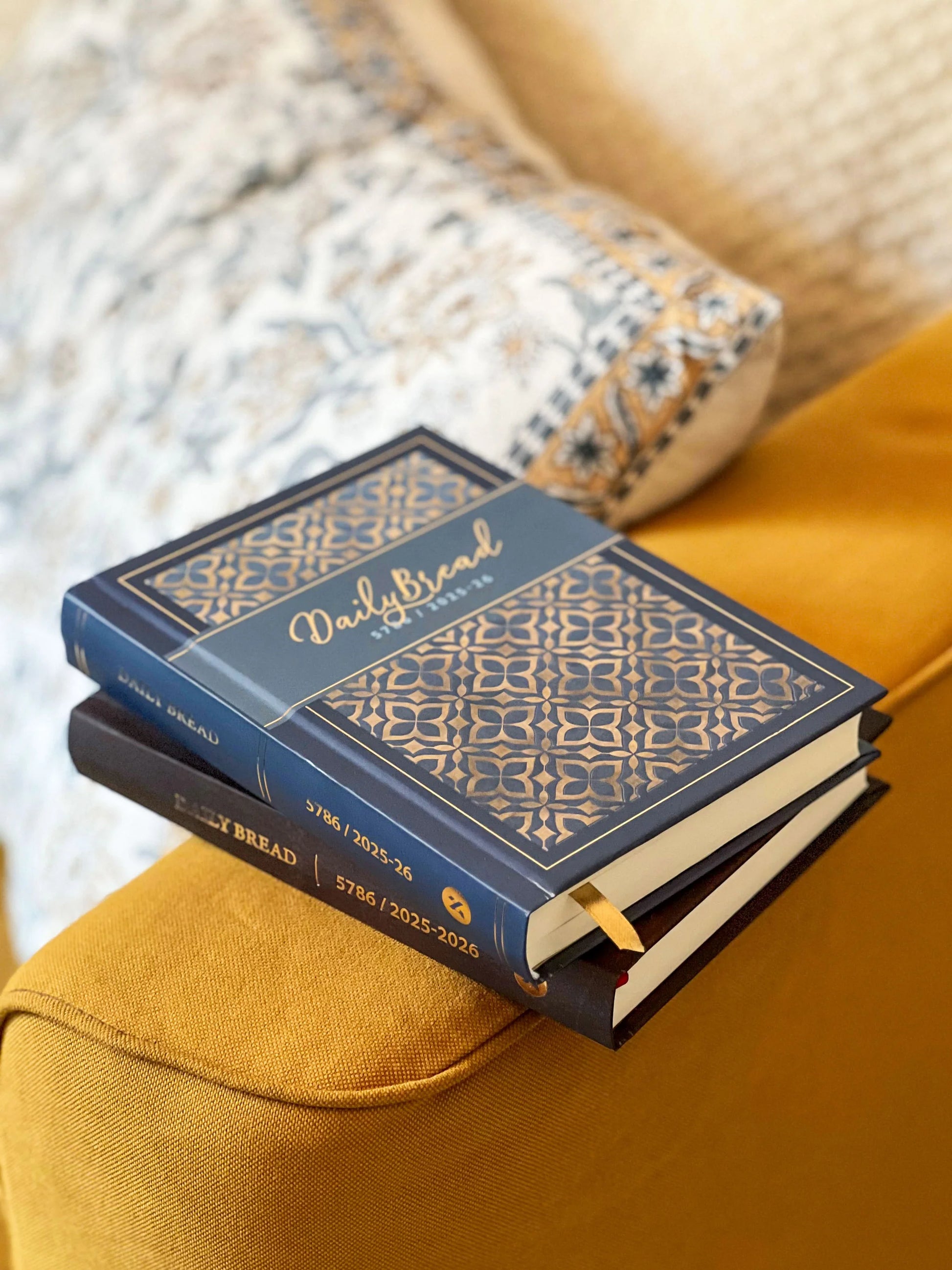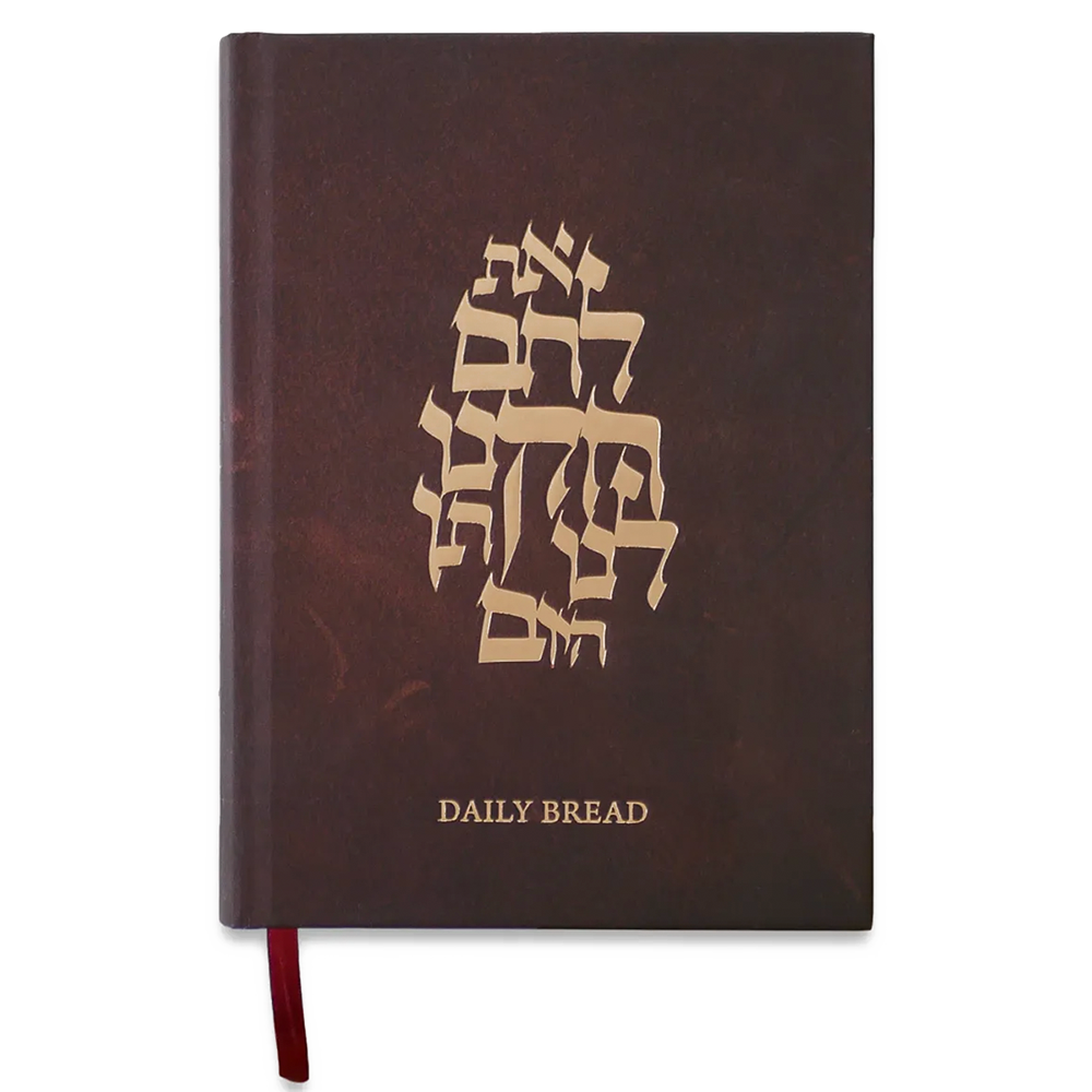 - Our classic brown hardcover with gold Hebrew text emblazoned on the cover comes from Matthew 6:11 and is translated to mean "give us this day our daily bread."