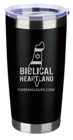 The design is perfectly laser-engraved into the stainless steel and features the shape of Israel along with the country’s flag and text reading “Biblical Heartland”.