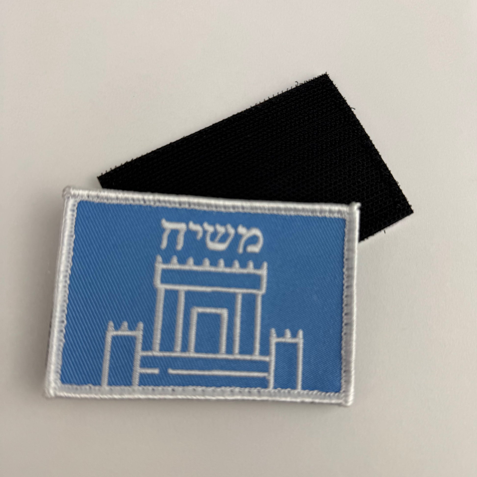 Introducing our new embroidered patch with a silhouette of the Jerusalem Temple paired with the Hebrew word "Mashiach" (Messiah). This patch has recently surged in popularity amongst IDF soldiers in Israel as a powerful symbol of heritage and faith.